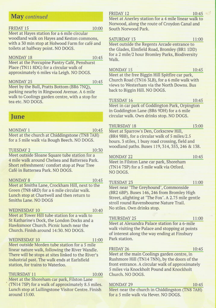 The Walks Programme is also available as a leaflet in most Bromley Libraries